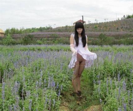 穿着连衣裙在薰衣草露出的女孩[17P]
